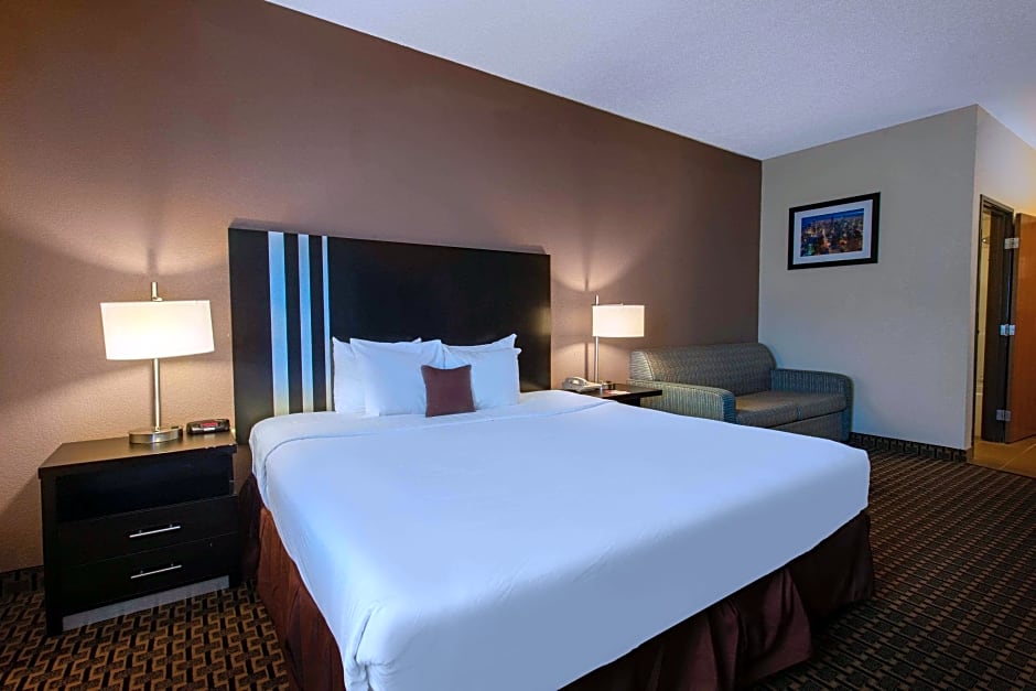 1 King Bed Non-Smoking Jetted Tub Suite is 323 square feet and includes a king-size bed 150-183 width plus living room.